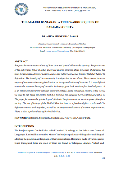 Banjaras have a unique culture of their own and spread all over the country. Banjara is one of the indigenous tribes of India. There are diverse opinions about the origin of Banjaras but from the language, dressing pattern, clans, and culture one comes to know that they belong to Rajasthan. The identity of the community is unique due to its culture. There seems to be an impact of modernization and globalization on the age-old culture of the tribe. It is very difficult to state the accurate history of the tribe. Its history goes back to about five hundred years. It is an ethnic nomadic tribe with rich cultural heritage. Being the richest country in the world, we used to call India the golden bird it is true that the Banjaras have contributed a lot to it. The paper focuses on the golden legend of Maluki Banjaran is a true warrior queen of banjara society. The use of history of the Malluki Das has been as a freedom fighter, a role model in different contexts and a symbol, as well as an inspirational source of women empowerment. There is also a political use of the Malluki Das.